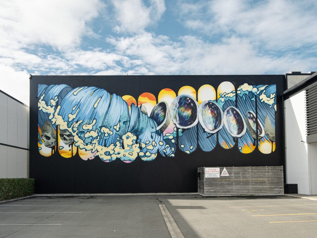 Wongi has played a major role in the transformation of graffiti art in Otautahi Christchurch and is synonymous with the rise of street art muralism in the city. From media coverage to featuring in documentaries and various publications as well as festivals, his murals have served to transform hundreds of walls throughout the city and beyond.