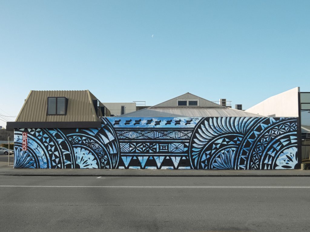 This mural honours the ocean as a living source of life, culture, and connection. The flowing Tatatau patterns echo tides and currents, while the bold forms symbolise guardianship and responsibility. It reminds us that what we do on land affects the sea, calling on the community to protect, respect, and care for our oceans for future generations.